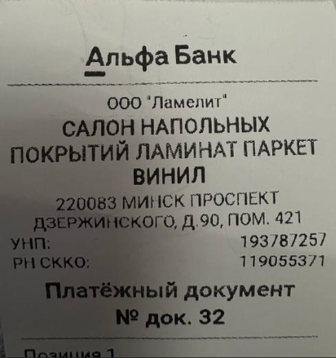 Выписка документов осуществляется по адресу г. Минск, ул. Шафарнянская 11 (БЦ «Порт») пом. 5 салон FloorDecor.